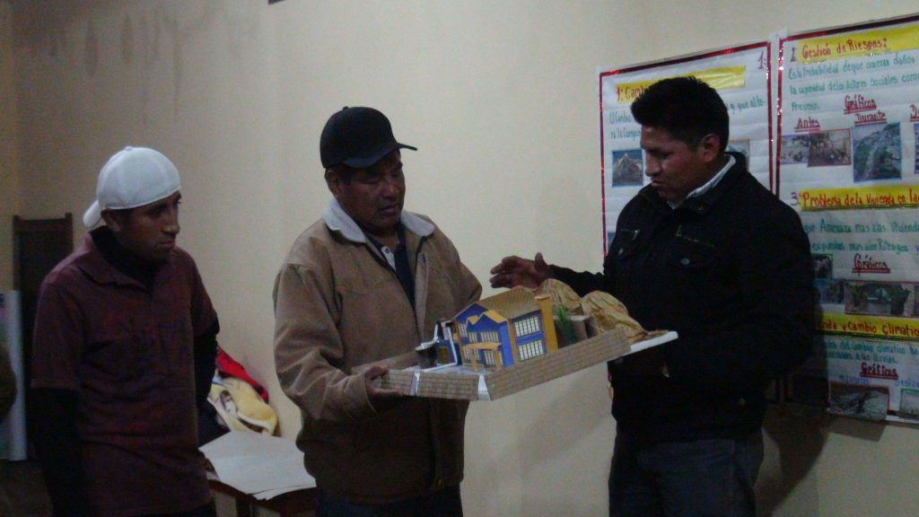 Asimismo estos talleres, tuvieron la característica de servir a los participantes, como base en el diseño del proyecto de mejoramiento de sus propias viviendas, en la perspectiva de mitigar los riesgos debidos a la ubicación de estas construcciones en zonas de alta pendiente, o para aplicar técnicas de adaptación al cambio climático como la cosecha de agua y el uso de artefactos higiénicos ahorradores.