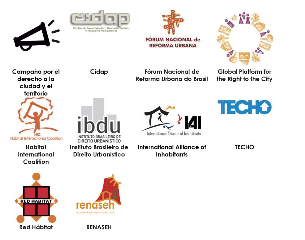 Nosotros, los movimientos sociales, las organizaciones de la sociedad civil y los gobiernos locales, estamos comprometidos con la justicia social a través de la promoción, defensa y cumplimiento de todos los derechos humanos relativos al hábitat, incluyendo el derecho humano a una vivienda adecuada, la tierra y el derecho a la ciudad en todas las regiones del mundo.