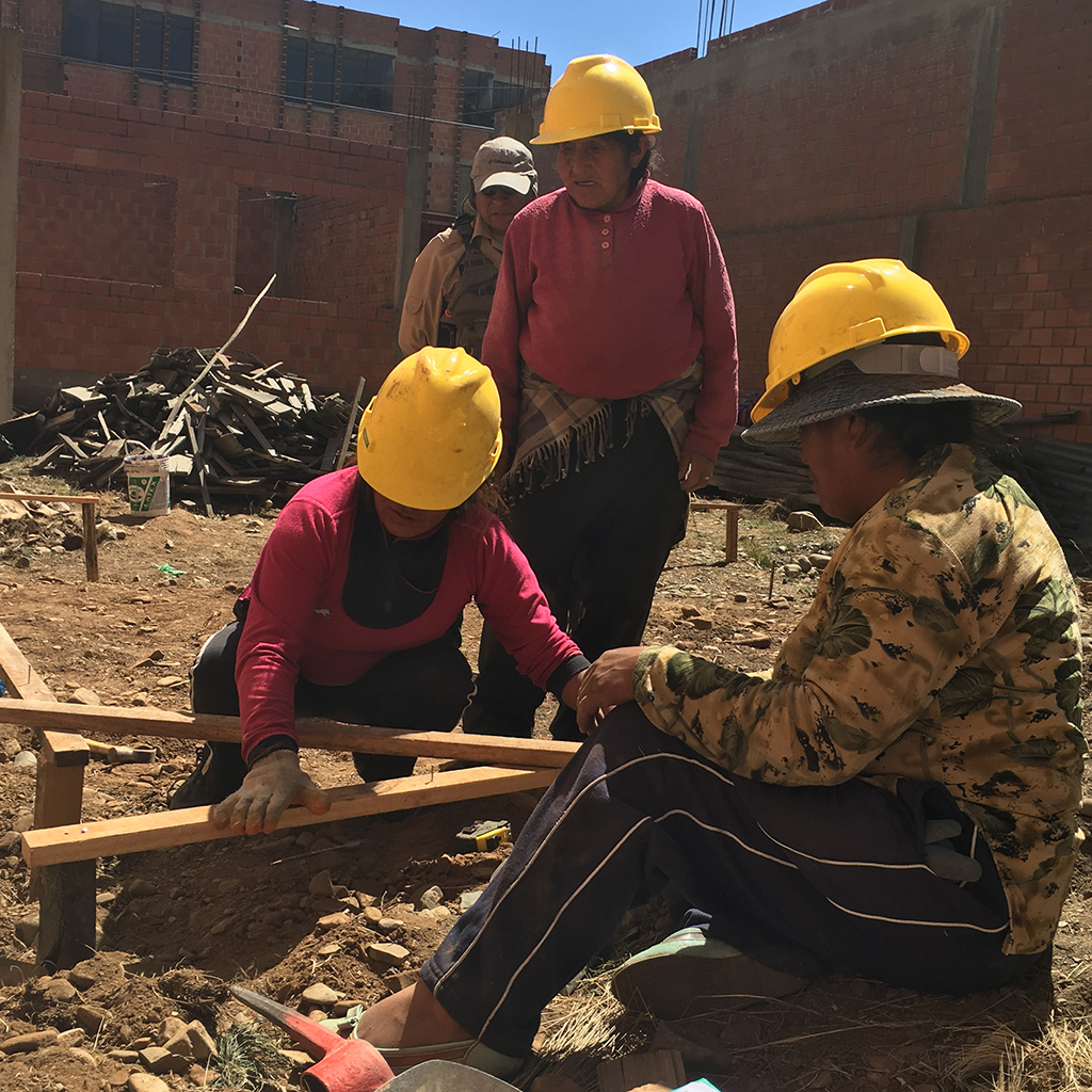 Este fin de semana, mujeres constructoras, tanto independientes como obreras de mantenimiento del Gobierno Autónomo Municipal de La Paz, participaron en la primera sesión de prácticas en obra del curso de construcción básica que Red Hábitat viene implementando en el marco del proyecto “Mujeres en la Construcción Hacia su Empoderamiento Político y Económico” en coordinación con la Escuela de Gestores Públicos Municipales (EGM) del municipio paceño.