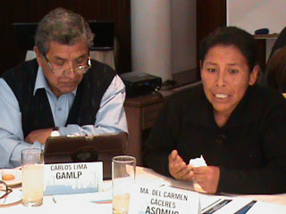 María del Carmen Cáceres y Sonia Quispe, miembros del directorio de la Asociación de Mujeres Constructoras (ASOMUC), también participaron en la reunión que propició espacios de diálogo entre los distintos sectores involucrados en el ámbito de la construcción.