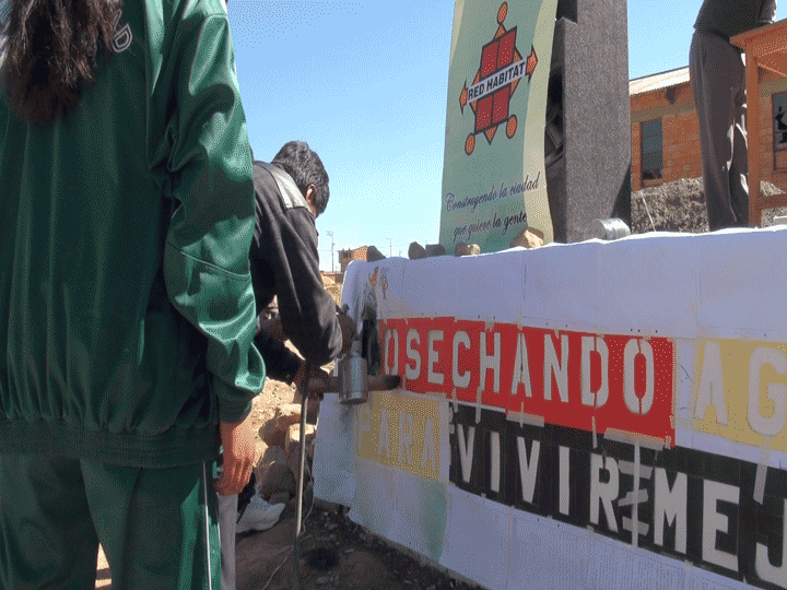 El día jueves 28 de marzo, Red Hábitat entregó un sistema de captación de agua de lluvia para la alimentación de las baterías de baños de la unidad educativa técnico-humanística Solidaridad. Este sistema consta de canaletas que transportan el agua de lluvia recolectada en los techos de la institución hasta un filtro sedimentador donde se limpia el agua, para posteriormente pasar a un tanque de almacenamiento de donde el agua es distribuida a la batería de baños gracias al uso de una bomba hidráulica. El director de la institución, el profesor Luis Marcos Padilla Conde, resaltó la participación de los padres de familia del colegio en la obra. “Lo más importante es la concientización que se ha generado entre los alumnos y sus padres con respecto a la cultura del agua”, mencionó.